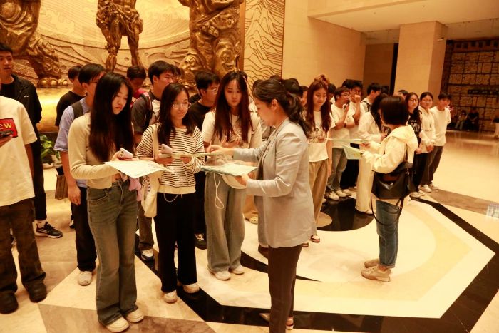 為進一步弘揚愛國主義精神,傳承優秀歷史文化,培育拔尖創新人才,2025年9月25日,人居科學與設計學院在河南博物院組織開展“尋找文物中的‘水’”愛國主義教育現場教學活動。學院黨委副書記劉靜霞、青馬班全體成員及師生代表共計五十余人參加活動。