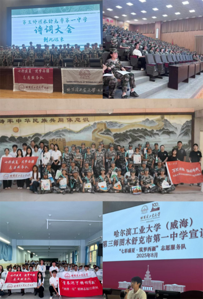 無論身處何地,哈工大人報效祖國的信念不會改變,支教隊還與哈爾濱工業大學第二十三屆研究生支教團新疆喀什隊在喀什第二十八中學聯合開展了“兩彈一星”精神宣講、哈工大精神宣講、高中經驗分享,傳遞選課技巧與高中學習經驗,點燃高中學子的青春夢想。