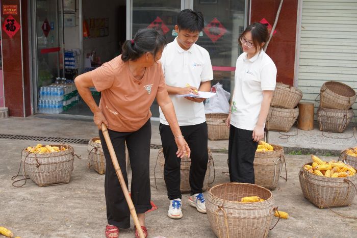 下午4點(diǎn),突擊隊(duì)開啟“鄉(xiāng)間流動(dòng)推普”。走到村東頭一戶院子時(shí),隊(duì)員看到一位老人正打掃玉米——塑料布上攤著曬干的玉米粒,老人持竹掃帚將其歸攏到簸箕里,額頭滲著汗。隊(duì)員立刻上前幫忙,邊歸攏玉米邊拉家常,得知老人買玉米種子常因方言鬧誤會(huì),便教他說“玉米種子”“買十斤玉米”的普通話,還在煙盒紙上寫下這些詞:“您揣兜里,沒事念念就熟了。”