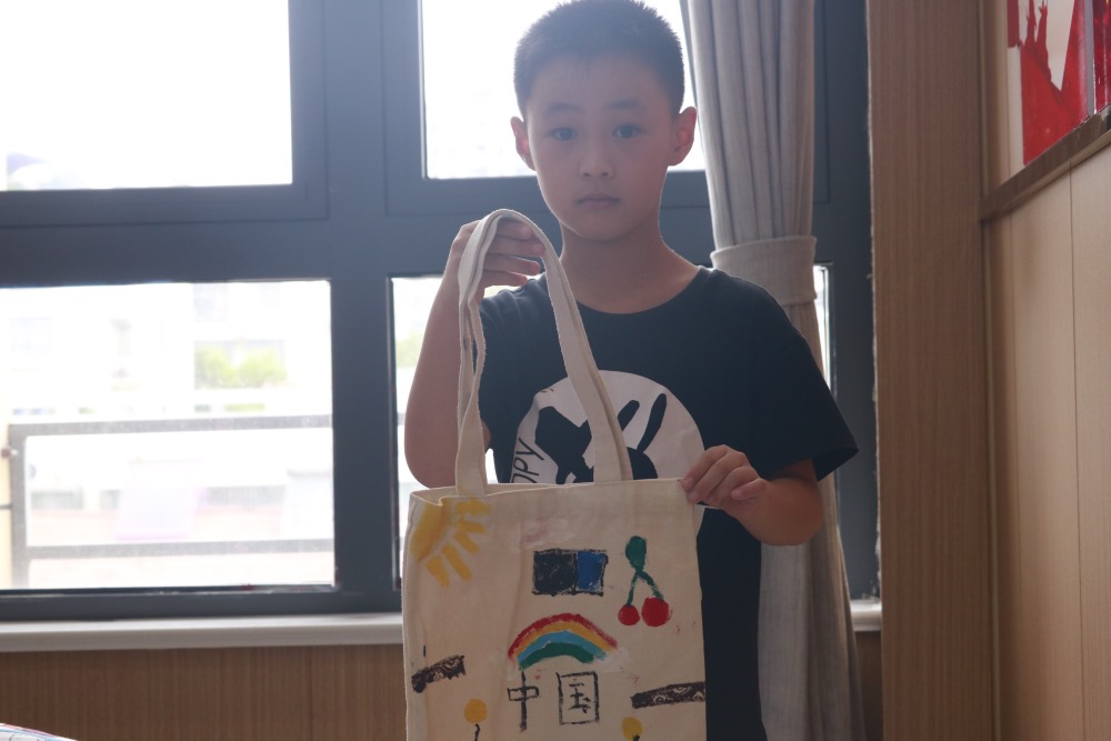 在心理健康課上,思思老師為同學們講解了愛自己的重要性與愛自己的方式,在無形和有形中鼓勵小朋友們都要接受并愛自己。在手工DIY課上,婷婷老師通過七色花的故事引導小朋友們說出自己的愿望,接著小朋友們將自己的想法用彩筆表達在帆布包上。一支支普通的彩筆,勾畫出小朋友們腦海中獨特有燦爛的童話世界。