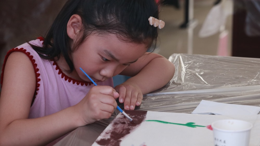 圖為一位小朋友在認真制作自己的帆布包 中國青年網通訊員 淦大舜 攝