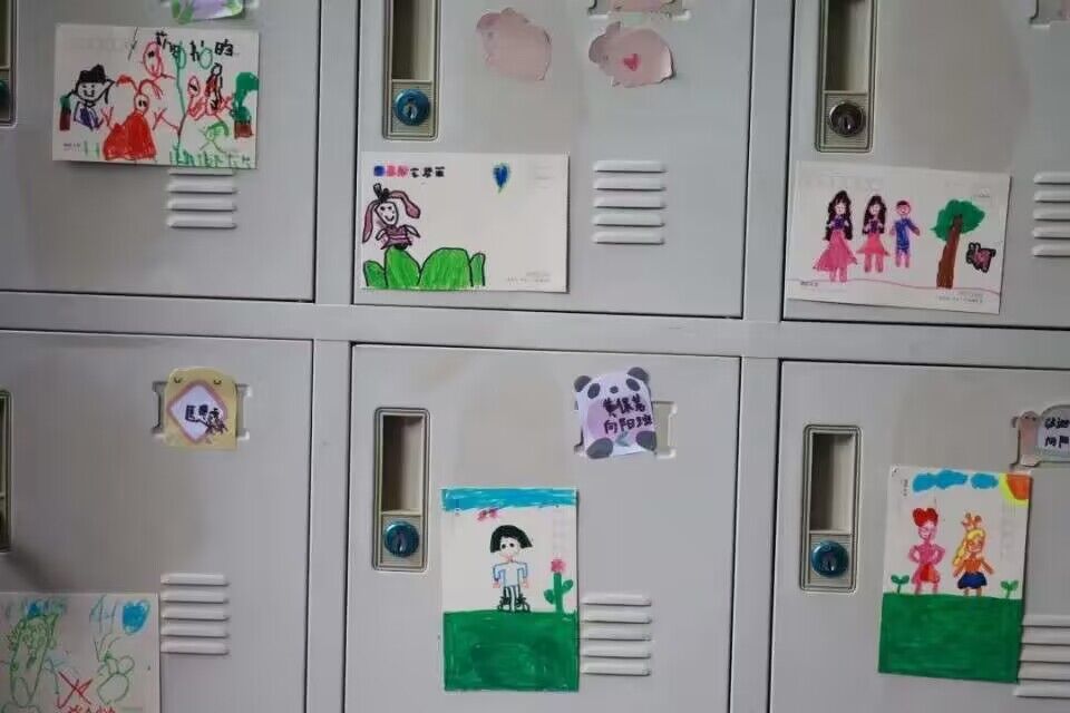 妙筆生畫,繪刻我意“剛才自我介紹時一些同學有點害羞,我們換一種方式來介紹自己吧!”在小朋友們創作完成之后,老師帶領他們把畫貼在自己的柜子上面,一雙雙小手輕輕地撫平畫紙,一定要確保牢固平整才肯離開。這片“繪畫墻”成為了教室里一道靚麗的風景線。