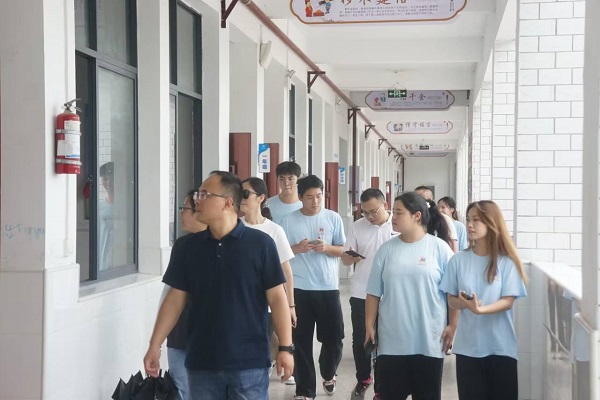 崇陽啟明星志愿服務團隊自7月4日從武昌理工學院出發抵達咸寧市崇陽縣港口鄉洞泉村洞泉小學開展支教活動,至7月12日以進行9天。武昌理工學院校團委領導協同崇陽縣當地負責人于7月12日下午14時前往洞泉小學向支教團隊表示慰問生活狀況并視察支教工作進展。7月12日下午14時,崇陽縣團委領導、洞泉村村委會程書記聯合武昌理工學院校黨委學生工作部李金永部長、校團委楊瑞書記出發到洞泉小學對崇陽啟明星支教服務團隊的工作進行視察。