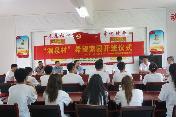 為了開拓孩子們的思維,培養(yǎng)學生的豐富想象力,做到德智體美全面發(fā)展,崇陽啟明星志愿服務隊于7月7日上午在洞泉村村委會會議室舉行崇陽啟明星志愿服務隊聯(lián)合崇陽縣洞泉小學希望家園開班儀式,與會人員港口鄉(xiāng)鄉(xiāng)團委王康副書記、徐劍良校長、洞泉村村委會領導以及團隊24名隊員。
